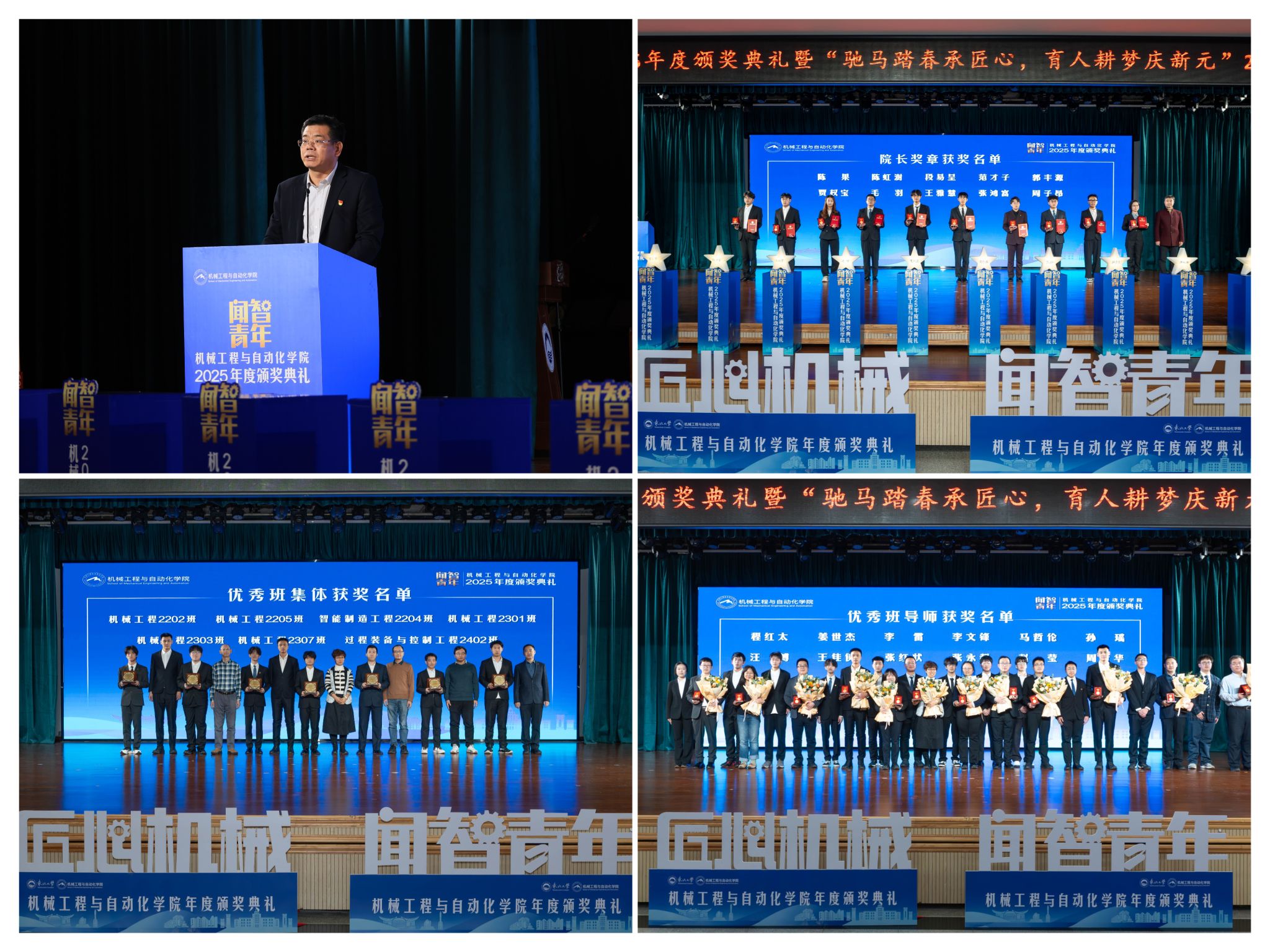 12月19日晚,机械工程取从动化学院“闻智青年”2025年度颁仪式正在学糊口动核心多功能厅举行。学校相关部分担任人、学院带领班子出席勾当。仪式由学院党委副、学院党委郝建山正在致辞中系统回首了一年来学院取得的主要成绩。学院积极办事国度计谋,投身深度金属矿智能开采纳配备全国沉点尝试室扶植,并正在环节科研范畴实现标记性冲破,获得国度严沉专项支撑。同时,学院成功引进增材取激光制制范畴领军团队,稳步推进学校新增学位点扶植,为久远成长奠基根本。正在人才培育方面,学院学子表示凸起,研究生学术丰盛,正在“挑和杯”“中国国际大学生立异大赛”等多项赛事中斩获国度级项,结业生就业率持续连结高位,展示了全面成长的优良素养。郝建山阐释了“闻智青年”品牌的育人内涵,勉励全体师生胸怀“国之大者”,将小我成长融入“制制强国”计谋,过硬本事,怯于立异创制,勤奋成为担任平易近族回复大任的时代新人。颁环节分三轮顺次进行。起首颁布的是“院长章”,刘云飞为毛羽等10名正在专业进修、科技立异、社会实践等方面表示杰出的学生颁布章。随后颁布“优良班集体”项,班导师代表为7个正在班风、学风及凝结力扶植中成效显著的班级颁。最初,仪式聚焦育人一线论理学生代表向获评“优良班导师”的教员们献上鲜花取荣誉证书,表达诚挚感谢感动。“院长章”获得者代表毛羽连系科研竞赛取意愿办事履历,讲述了“道阻且长,行则将至”的成长;“优良班集体”获代表豆煜轩分享了班级凝心聚力、共建优秀学风的活泼经验。正在“闻智匠心 共话青蓝”出格环节,从分歧视角展示了师生间思惟引领、学业互帮、讲授相长的温情互动,彰显了育人一线的深挚交谊取结实成效。据悉,“闻智青年”是机械工程取从动化学院出力打制的文化育人品牌。本次颁仪式既是年度的集中展现,也是典型树立、激励朝上进步的主要平台,旨正在指导全体学生以先辈为楷模,坚想、夯实专业根本、锻制立异能力,勤奋成长为具有家国情怀、为学校“双一流”扶植和高质量成长注入芳华力量。