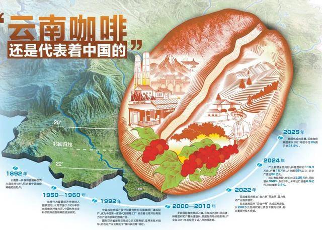 打开云南地图,北纬21°29′至29°15′之间,一条咖啡种植带连绵舒展。这里取哥伦比亚、埃塞俄比亚同处北纬25°至南纬25°的全球咖啡种植黄金区域,得天独厚的风土前提孕育了优良咖啡发展的绝佳。云南,承载着全国98%以上的咖啡产量,146。3万亩种植面积铺展正在红地盘上。从1892年引入第一粒种子,到现在脱节“国际原料供应地”标签,发展出本身质量取品牌辨识度,云南咖啡已成为“中国味道”的代表。“云南咖啡仍是代表着中国的”,界咖啡地图悄悄东移,云南咖啡,这一杯中国味道,正正在期待世界细细品尝。